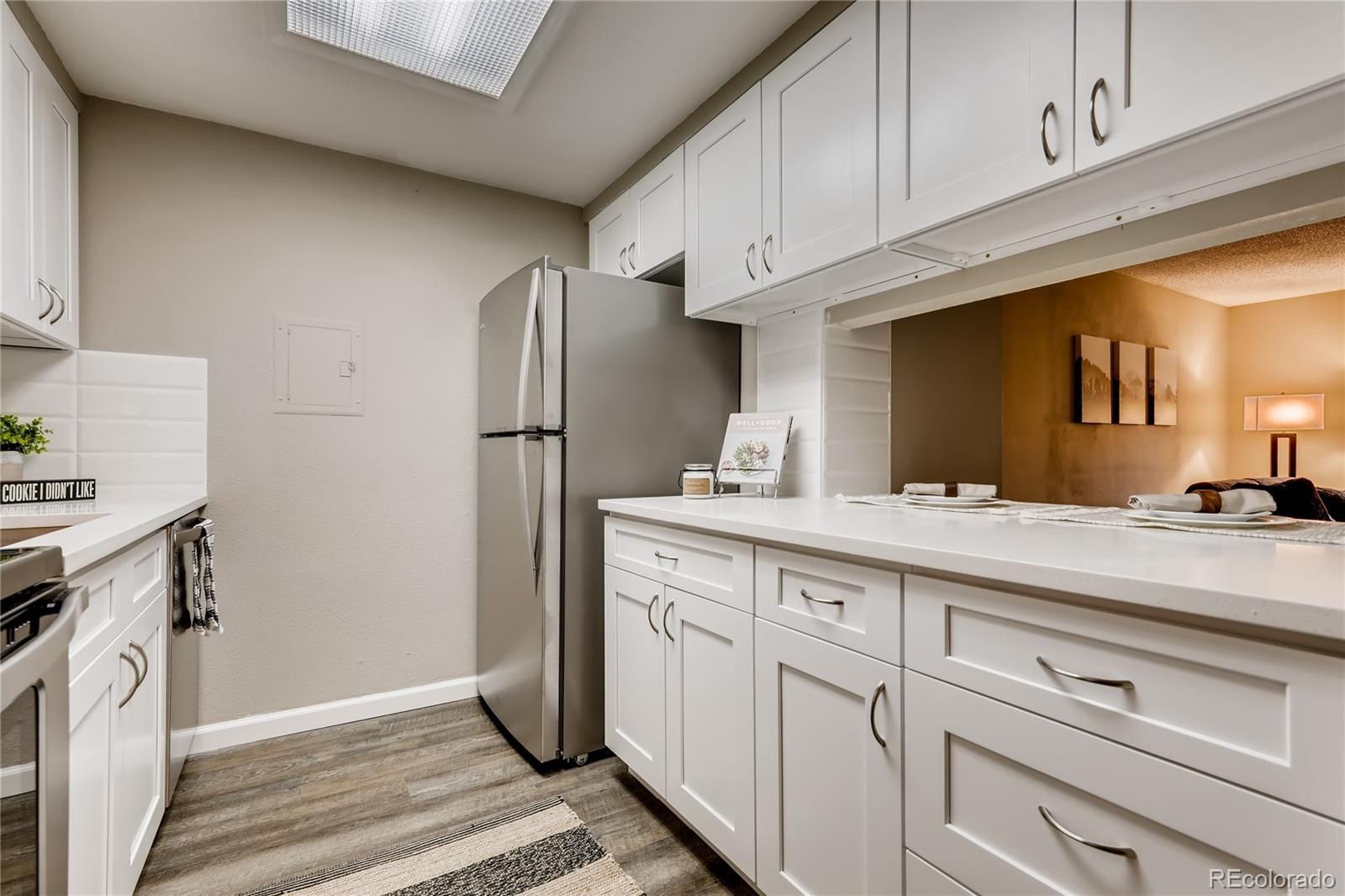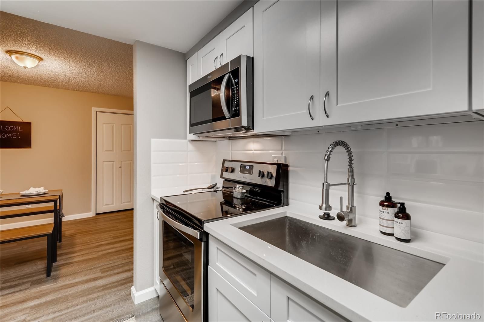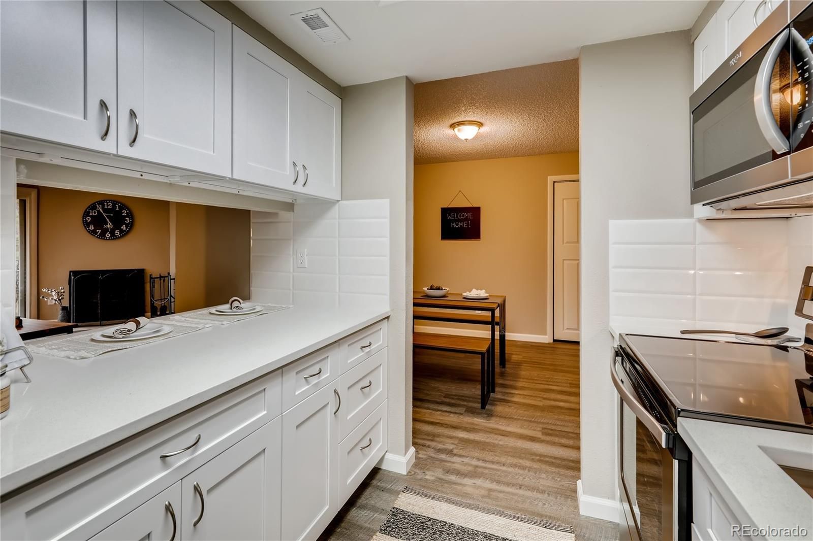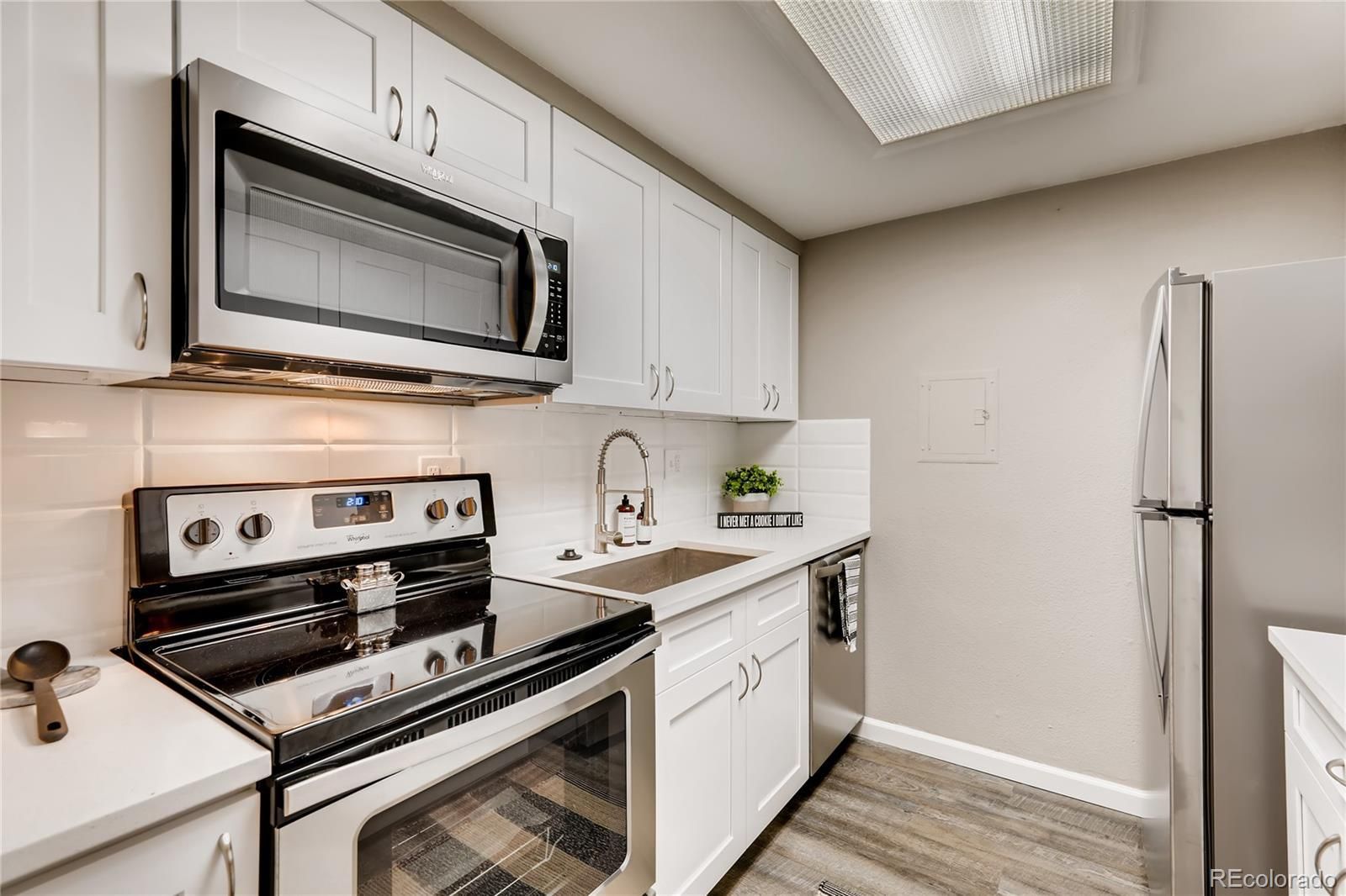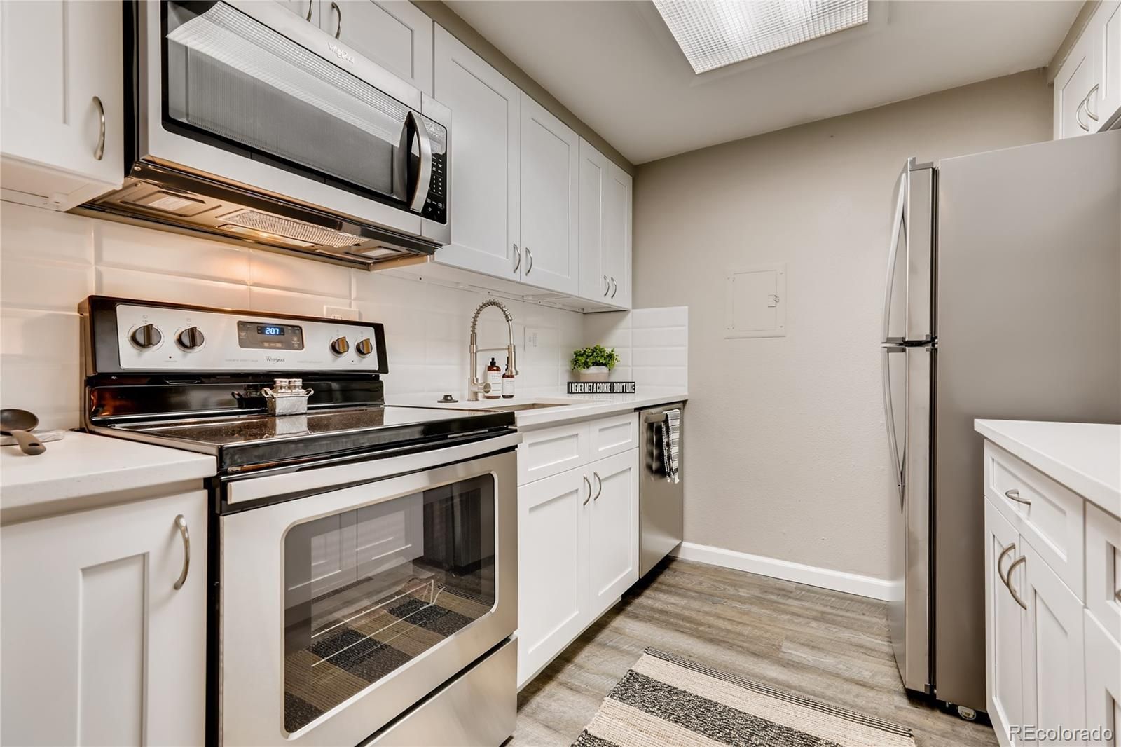 Welcome home to this remodeled condo with updates everywhere! High-end finishes for an affordable condo unit. The kitchen boasts quartz countertops, new stainless appliances, new shaker cabinetry and tile. Luxury plank vinyl flooring throughout makes this concept modern and the floorplan flows into the remodeled bathrooms. Bedrooms are sizeable. RTD center is across the street with easy access to I-25 and plentiful shops and restaurants nearby make this a great location. HOA includes fitness center, pool, recreation area with free wifi, playground, pond, and BBQ area. HOA covers water, snow removal/lawn maintenance and exterior maintenance. A fantastic new home, it won't last long.