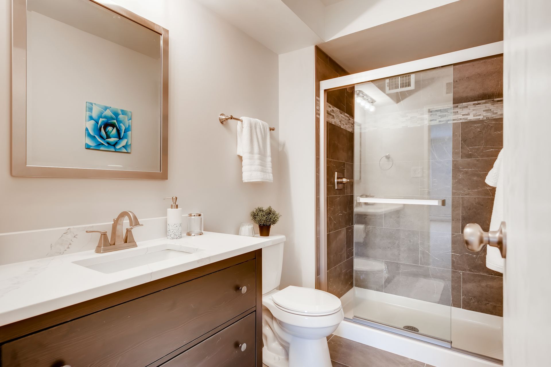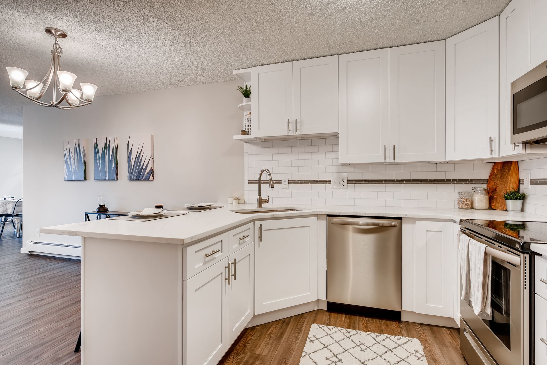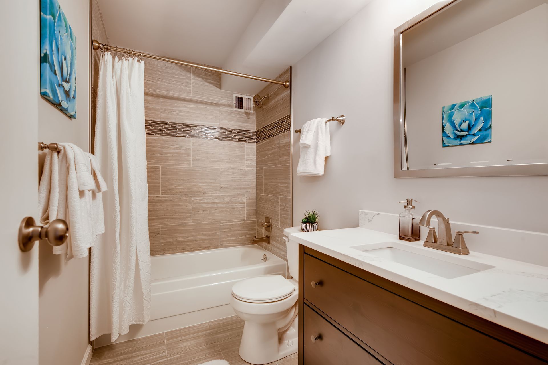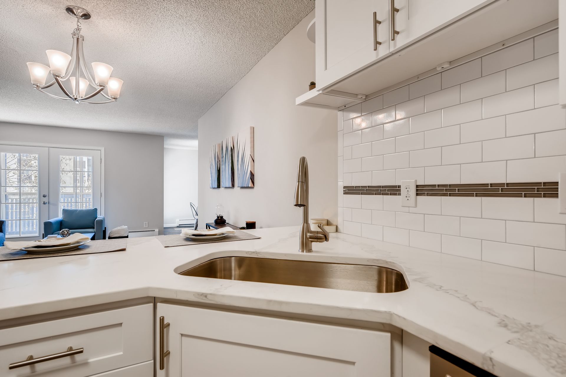 Completely updated and modern condo. Enjoy the open-concept kitchen and living space with dining area for entertaining. New quartz countertops, stainless steel appliances, backsplash, vinyl plank flooring, and white shaker cabinets. The inside flows into the master bedroom with new carpet and a stunning master bathroom with walk-in shower and new vanities and fixtures. Large walk-in closet with built in shelving. Second bedroom is spacious. Common bath features new tile, vanities, fixtures, and flooring. Separate laundry/storage room with washer & dryer included. Enclosed patio is 110 SF and has AC. Private storage locker included (~6’ deep). Private garage under building with reserved spot. HOA is well maintained with on-site mgmt and features a clubhouse, indoor hot tub, sauna, pool, exercise center, and more; gas, electric, water, and sewer included in dues. This unit is the absolute best in south Denver at the 300s, and shines! Come see it!