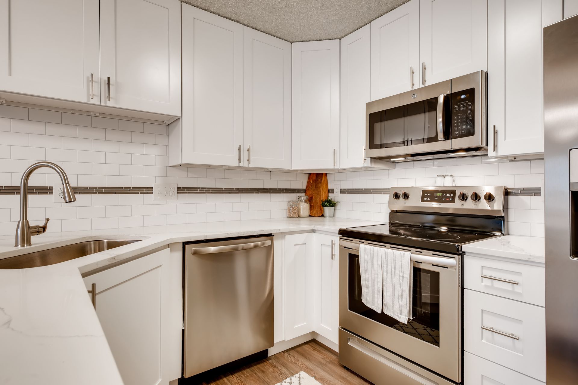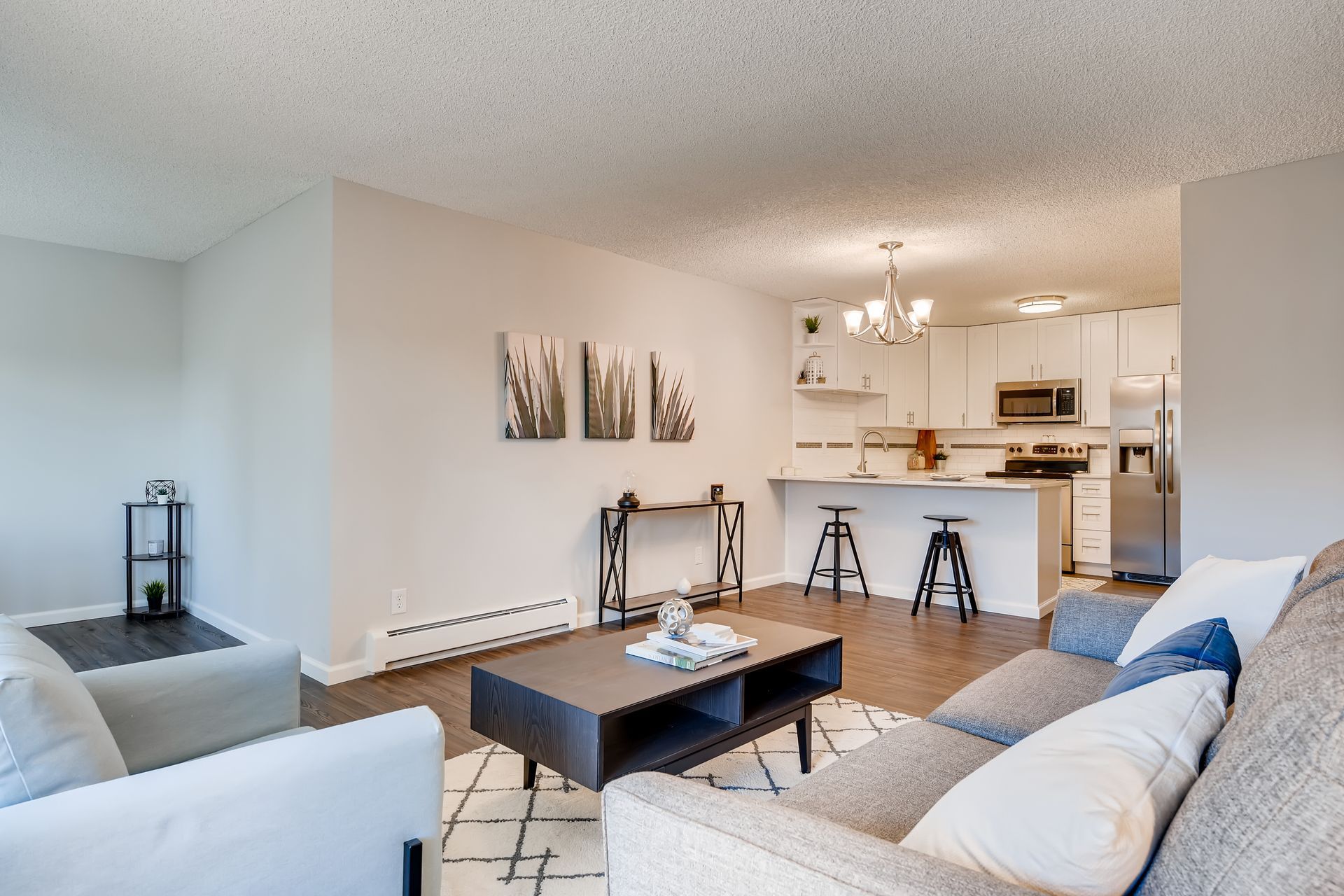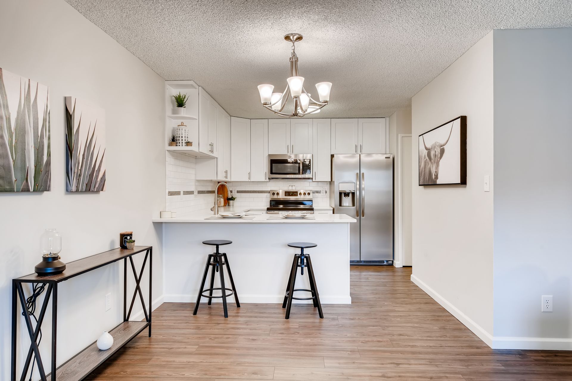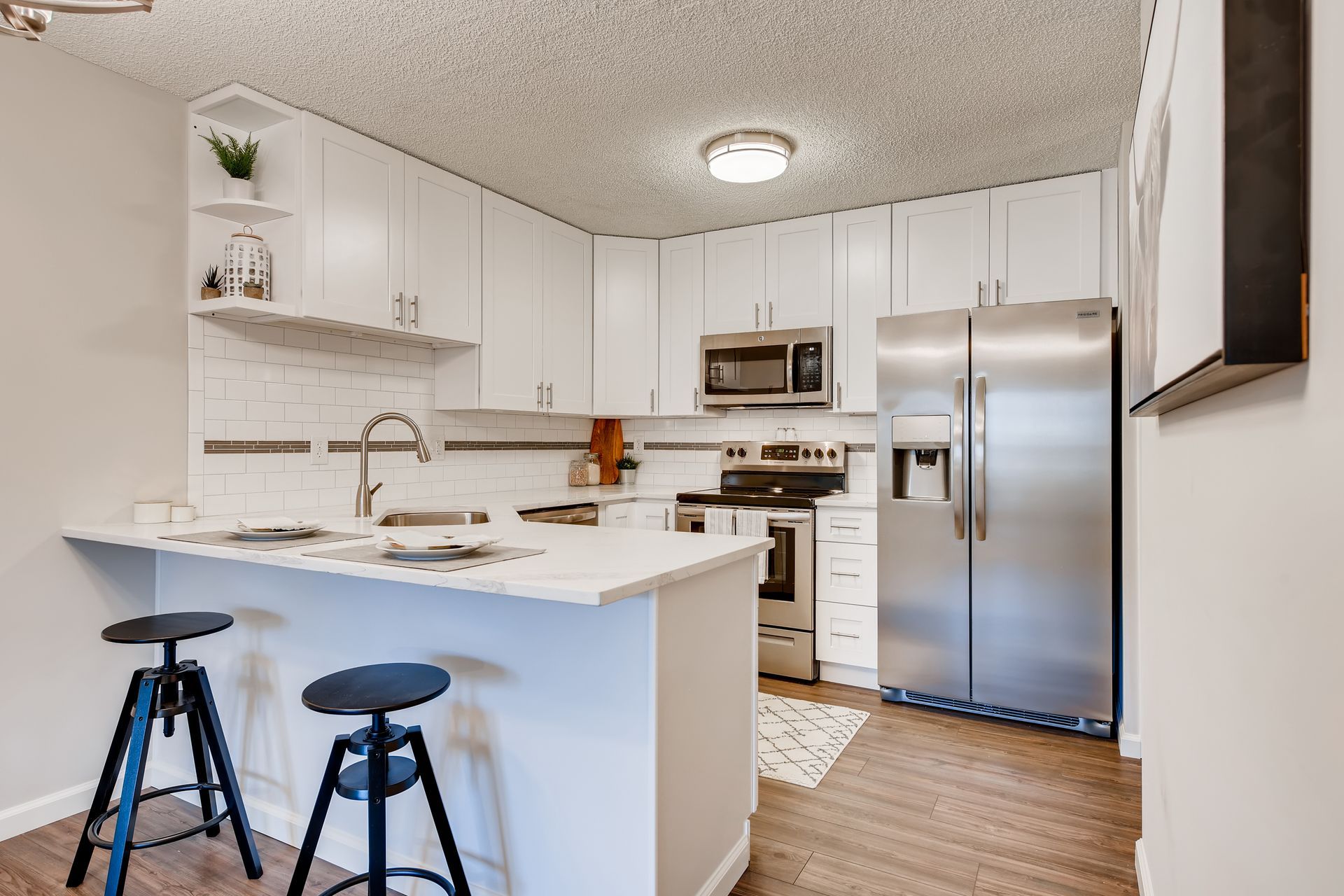 Completely updated and modern condo. Enjoy the open-concept kitchen and living space with dining area for entertaining. New quartz countertops, stainless steel appliances, backsplash, vinyl plank flooring, and white shaker cabinets. The inside flows into the master bedroom with new carpet and a stunning master bathroom with walk-in shower and new vanities and fixtures. Large walk-in closet with built in shelving. Second bedroom is spacious. Common bath features new tile, vanities, fixtures, and flooring. Separate laundry/storage room with washer & dryer included. Enclosed patio is 110 SF and has AC. Private storage locker included (~6’ deep). Private garage under building with reserved spot. HOA is well maintained with on-site mgmt and features a clubhouse, indoor hot tub, sauna, pool, exercise center, and more; gas, electric, water, and sewer included in dues. This unit is the absolute best in south Denver at the 300s, and shines! Come see it!