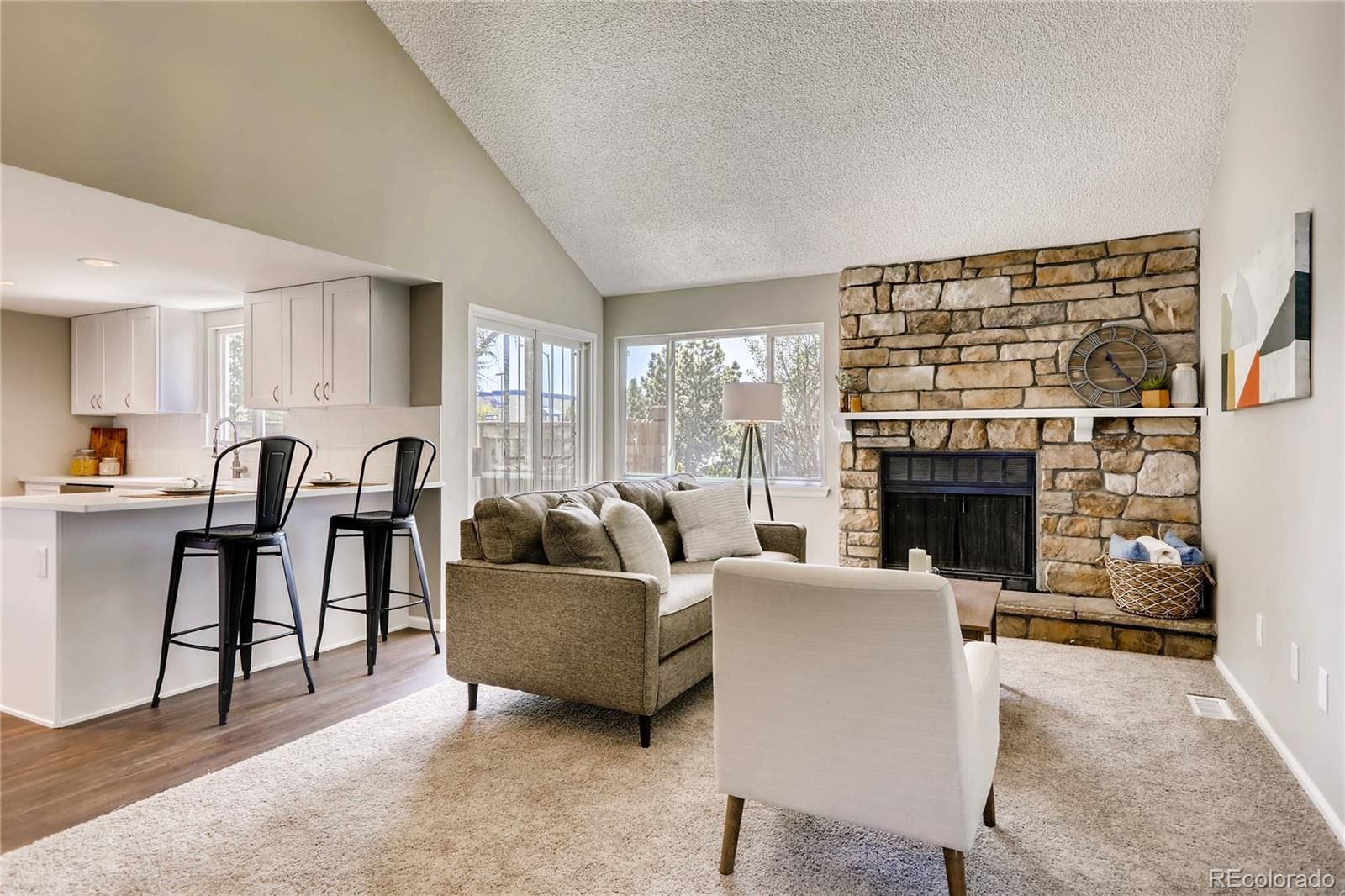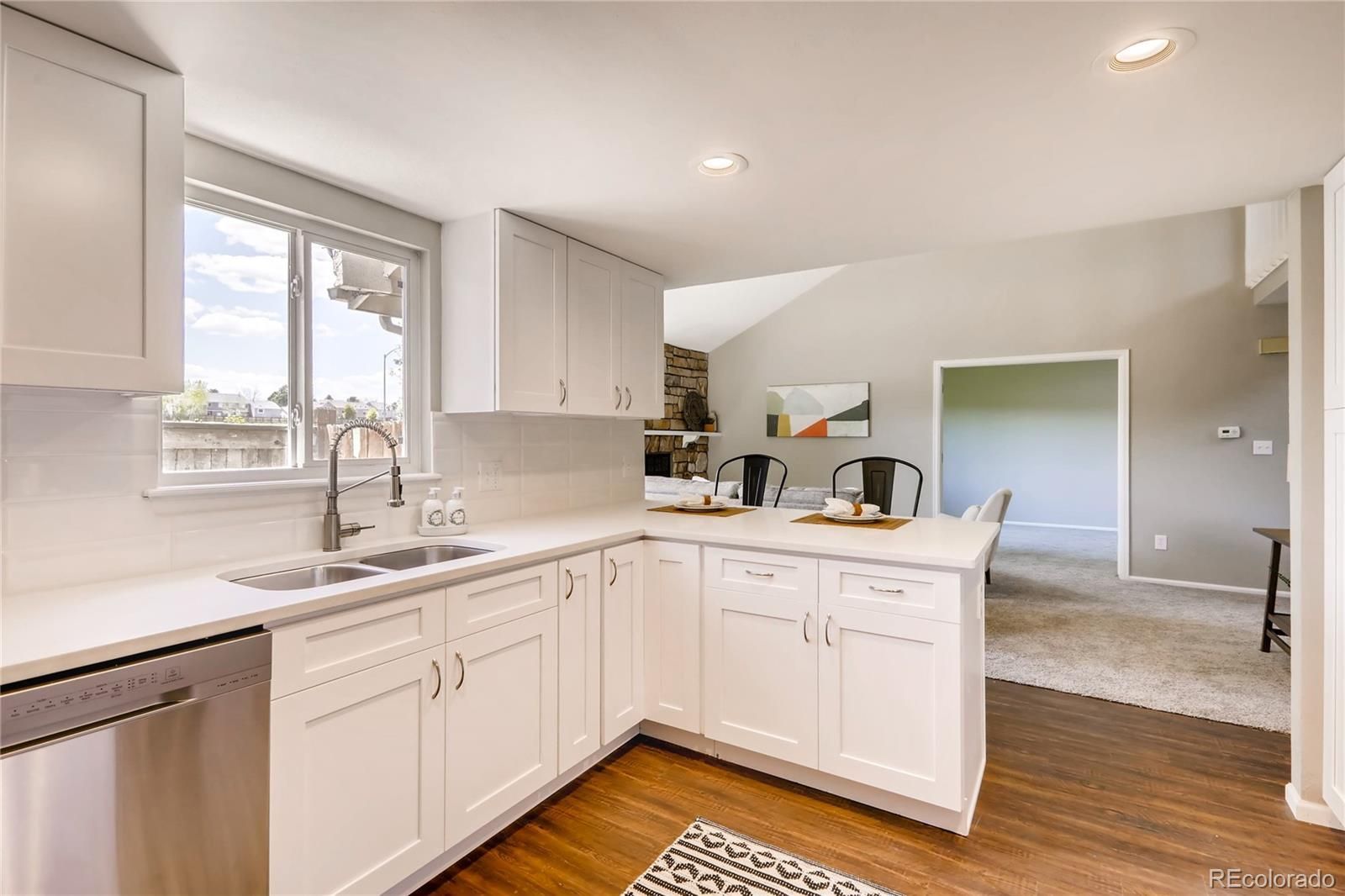 Come and see it! There is no better value for these finishes in the metro area. This cozy end-unit home features two oversized bedrooms. Brand new quartz countertops, new appliances, new cabinets, new lighting, newer windows, new carpet and flooring, and freshly painted! New water heater as well. Both bathrooms have been renovated from top to bottom, the master bathroom boasts a full bathtub and shower. Private garage parking included. It won't last long, so come have a look!